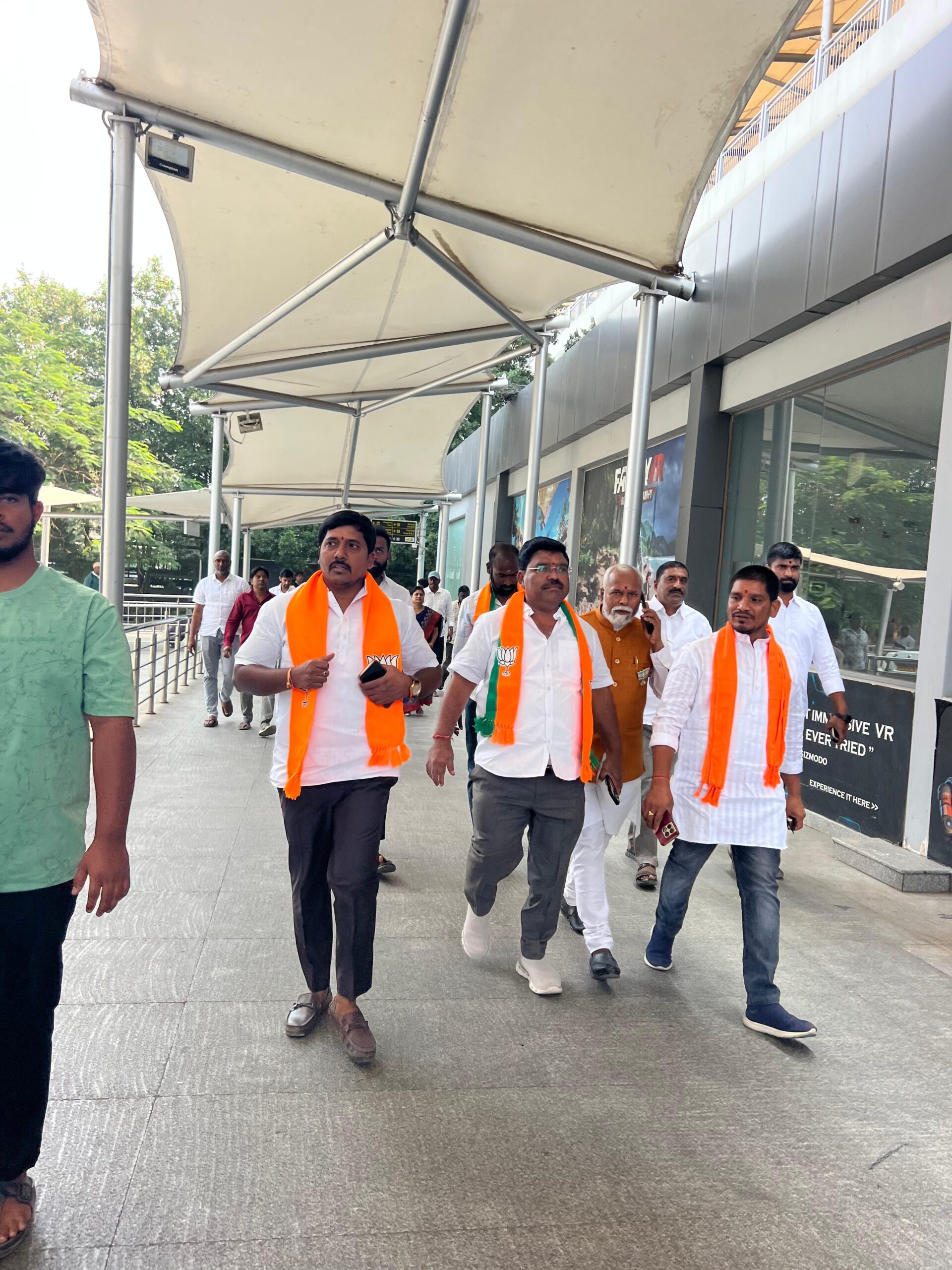 బిజెపి జాతీయ అధ్యక్షుడు నితిన్ నబీన్ సిన్హా తెలంగాణకు మొదటిసారిగా వచ్చేస్తున్న సందర్భంగా ఆయనకు ఘన స్వాగతం పలికేందుకు కిస్మత్ పూర్ మున్సిపల్ కార్పొరేషన్ డివిజన్ నుండి రంగారెడ్డి జిల్లా బిజెపి పార్టీ కార్యవర్గ సభ్యుడు మాజీ ఉపసర్పంచ్ నీరుడు శేఖర్ ముదిరాజ్ ఆధ్వర్యంలో పెద్ద ఎత్తున నాయకులు కార్యకర్తలు తరలి వెళ్లారు. బుధవారం ఉదయం కిస్మాత్ పూర్ నుండి ఆరమైసమ్మ దేవాలయం వరకు పార్టీ సీనియర్ నాయకులు కార్యకర్తలు అంతా కలిసి ర్యాలీగా వెళ్లారు.అనంతరం ఆరామైసమ్మ దేవాలయం వద్ద పూజా కార్యక్రమాలను నిర్వహించి పెద్ద ఎత్తున ర్యాలీగా శంషాబాద్ ఎయిర్పోర్ట్ కు తరలి వెళ్లారు. ఈ కార్యక్రమంలో పార్టీ సీనియర్ నాయకులు, కార్యకర్తలు,అభిమానులు ఉన్నారు.